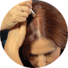 Apply to damp or dry hair using the wide applicator brush to cover the most visible grey hairs (roots, temples, etc.) Hold hair down near roots and brush along either side of part.